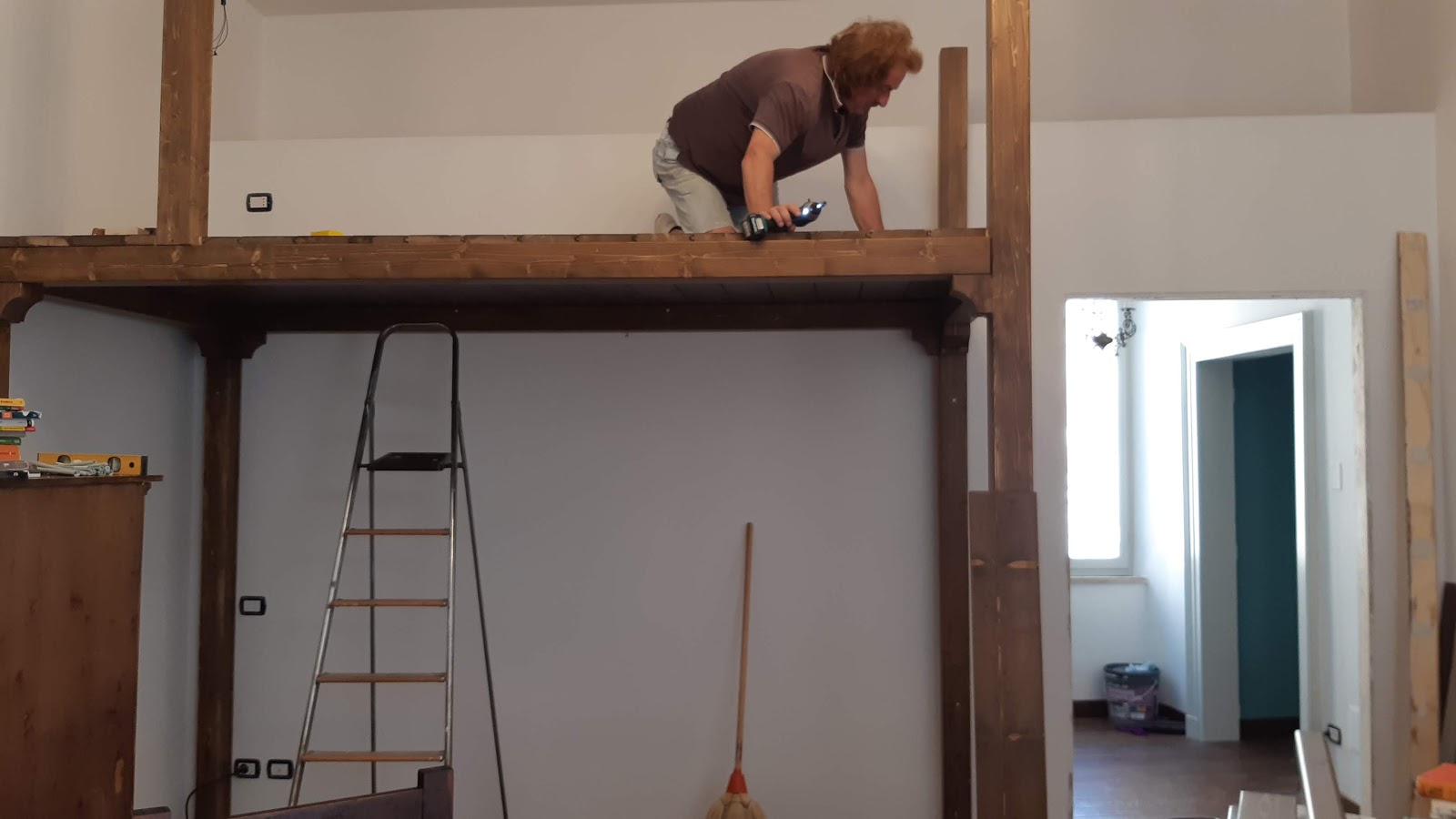 Anyway, one of his constructive procrastination opportunities was in the boys' room. Maurizio, another carpenter working in the house, has broken his foot (yes, working on our things), so Enrico has leapt in to help. Maurizio was working on a loft, and was unable to perform the installation.![]() |